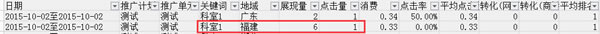 f,为了确定该数据的最终点击情况,我们导出该关键词在广东地区的数据情况做辅助了解。